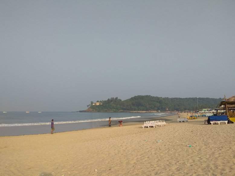 Místní několikakilometrová pláž, Baga beach, je plná lehátek, deštníku, ale hlavně Indů a turistů. Ranni procházka po ní byla příjemná jen do té doby než se po mém boku vystřídalo postupně několik Indek, které nejprve zajímalo kolik mám sester a pak mi neodbytně nabízely šperky, které bych jim od nich měla výhodně koupit.