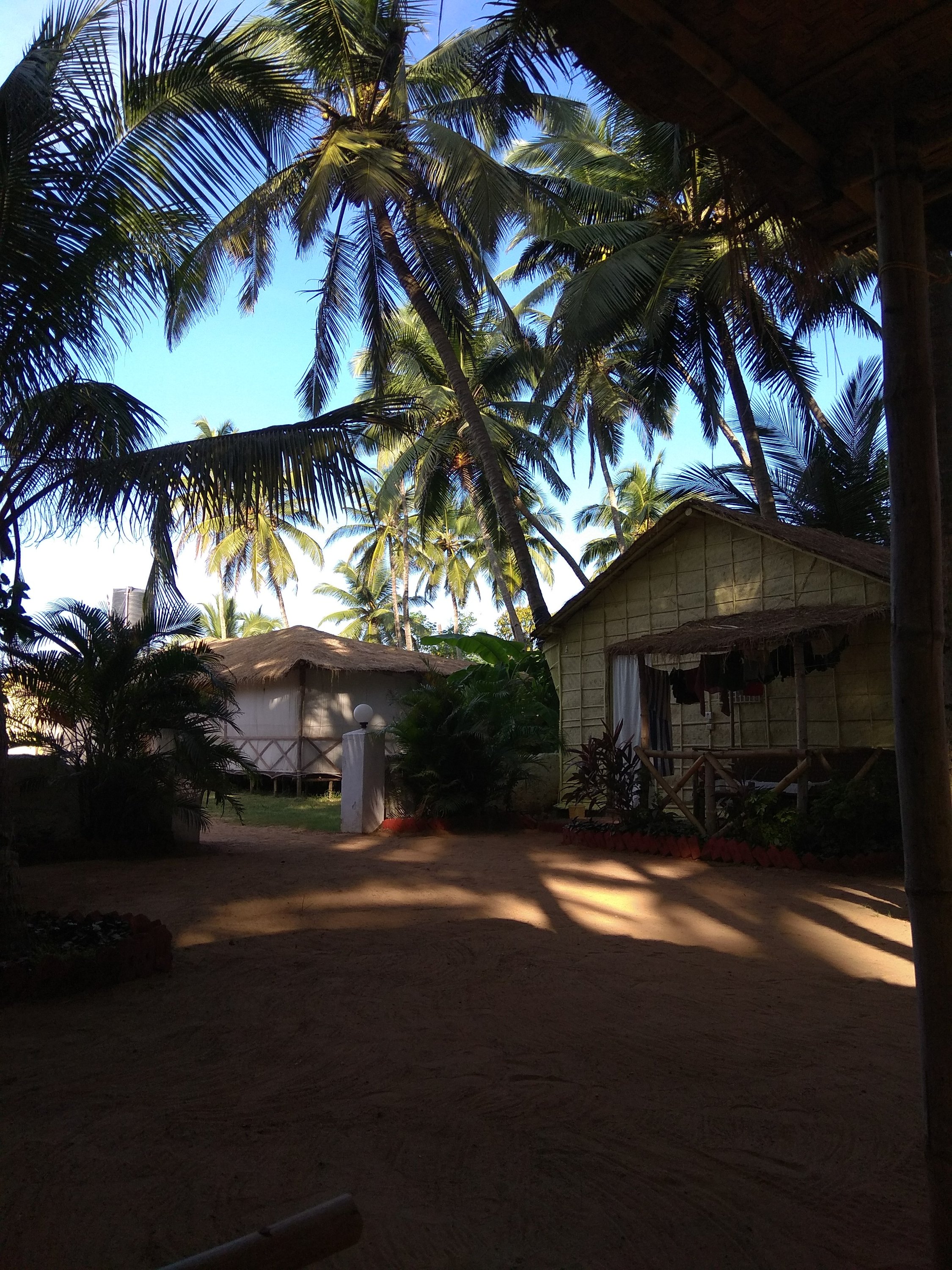 Za zvuku indických cikád, které jsem měla snad pod postelí, jsem pak konečně usnula. Kolem čtvrté ráno mě ale vzbudila strašná rána. Jakoby spadl lustr. (I když to tady opravdu nehrozí. Ze stropu tu visí jen holá žárovka). Strašně jsem se lekla a nechápala jsem, co se stalo. Bylo to v chatce u mě? Rozsvitila jsem a neviděla jsem nic, co by udělalo takový rámus. Další myšlenka byla, že se někdo vloupal do chatky vedle, vyrazil dveře… A teď bude řada na mě…