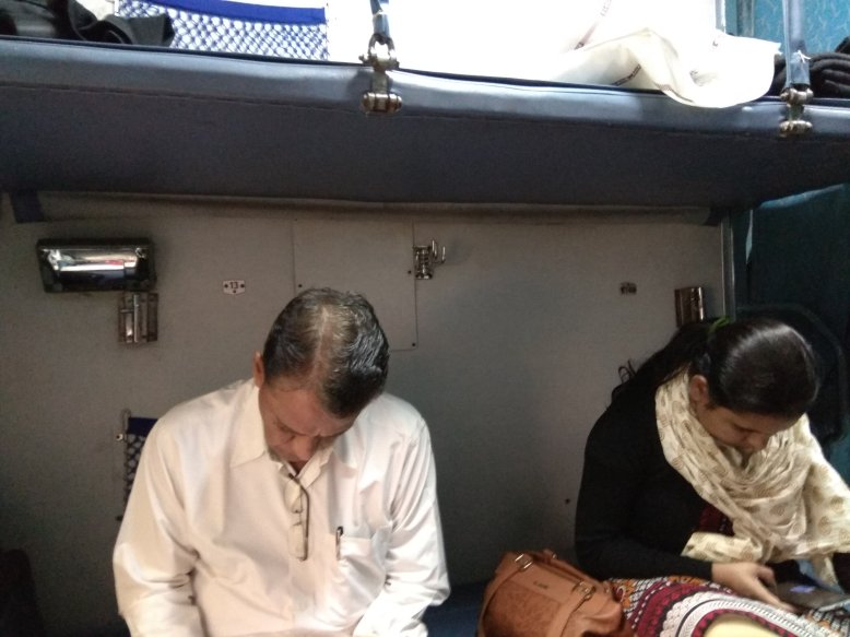 V mém kupé seděl mladý manželský pár a starší pán. Mladík se dal se mnou do řeči ještě než se vlak rozjel. Vrací se s manželkou z výletu po Kérale. Shodou náhod byli na některých místech, kam se za pár dní také chystám. Ukázovali mi krásné fotky a hrozně se divili, že jedu sama a nenajmu si nějakého průvodce. Teď se vrací domů a čeká je 36 hodinová (!) cesta tímto vlakem, někam k Bombaji.