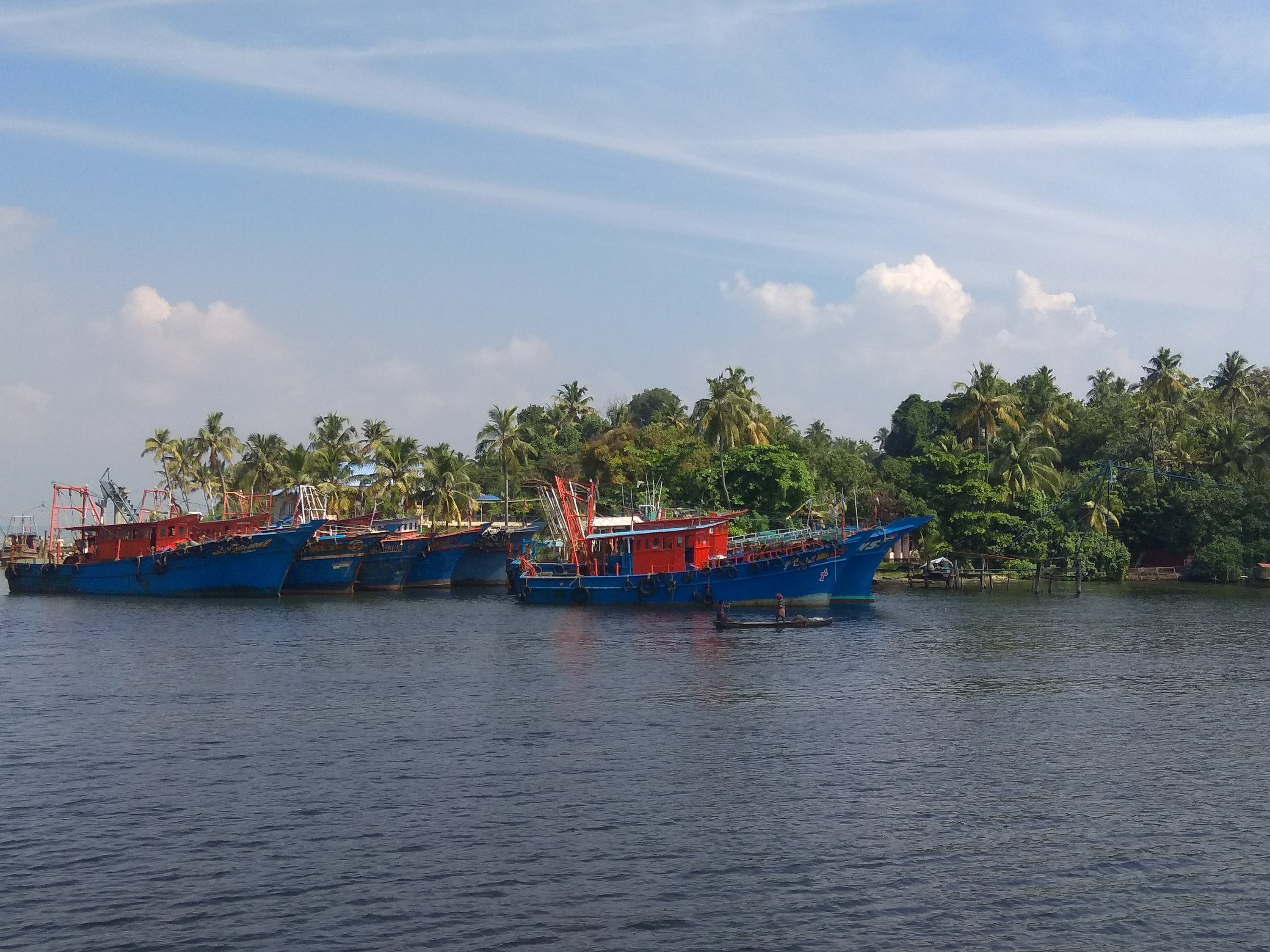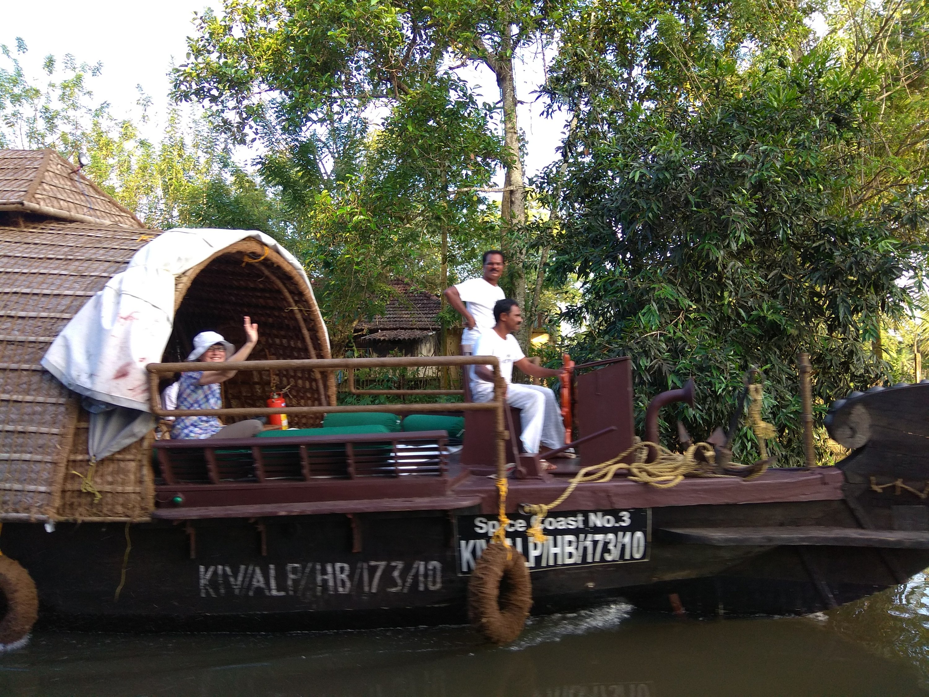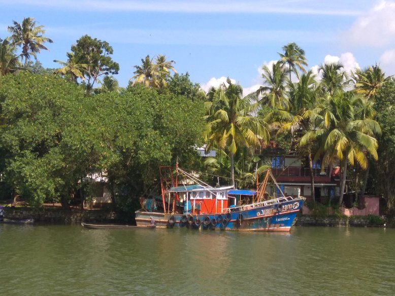 Bylo na čase opustit Kollam. Ráno jsem v přístavu nasedla na loď do Alleppey, které je asi 80 km cesty. Poplujeme po hlavní třídě backwaters, širším kanálem a přes pár jezer. Cesta zabere celý den.