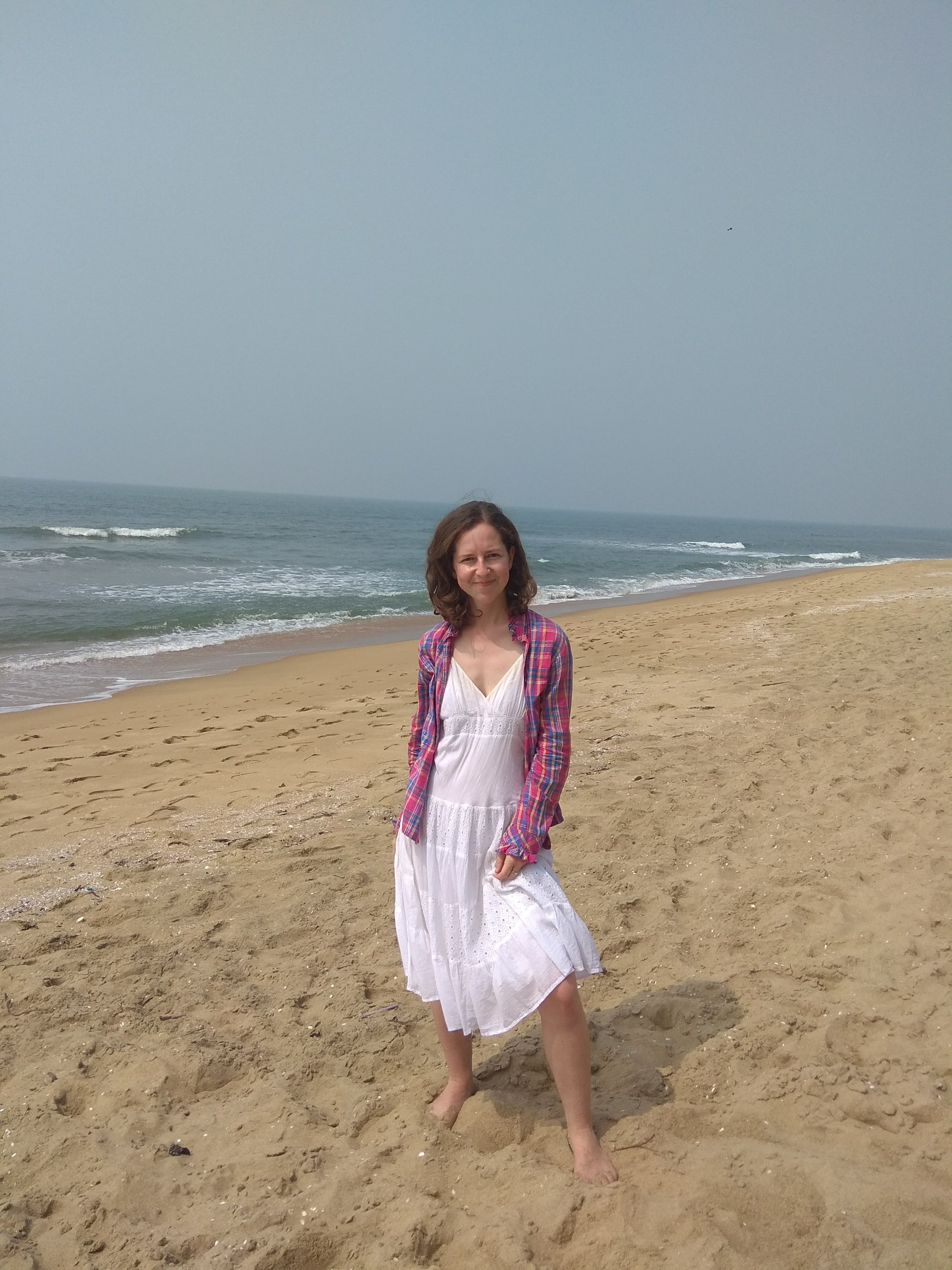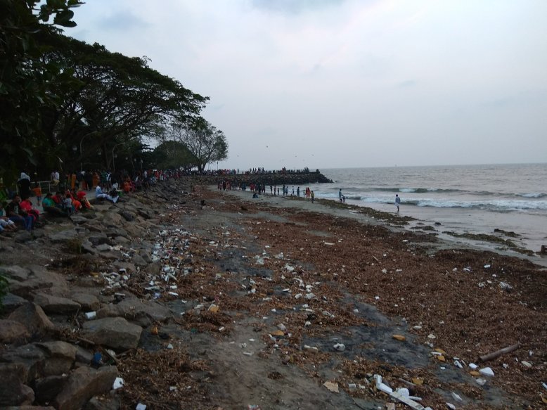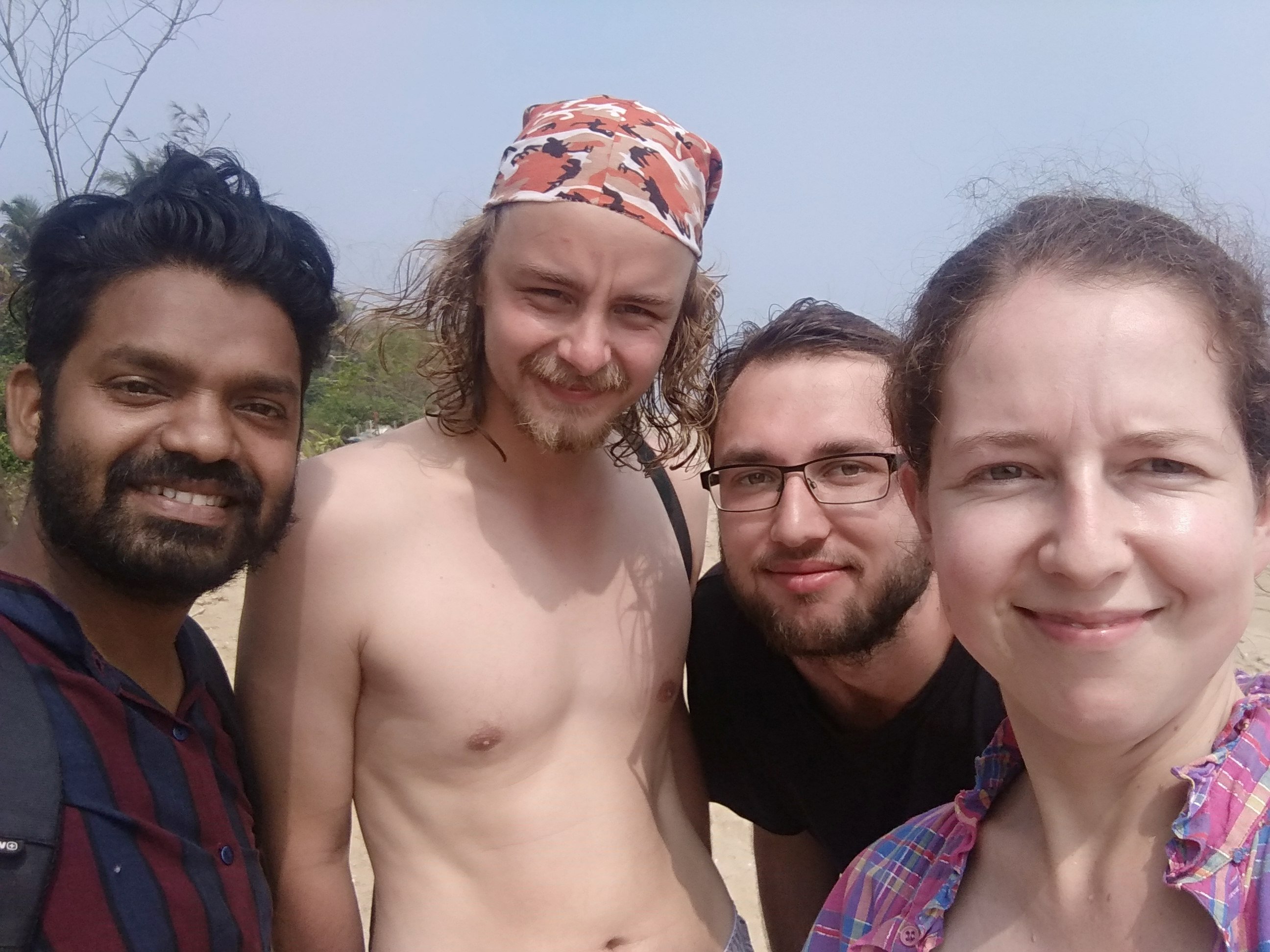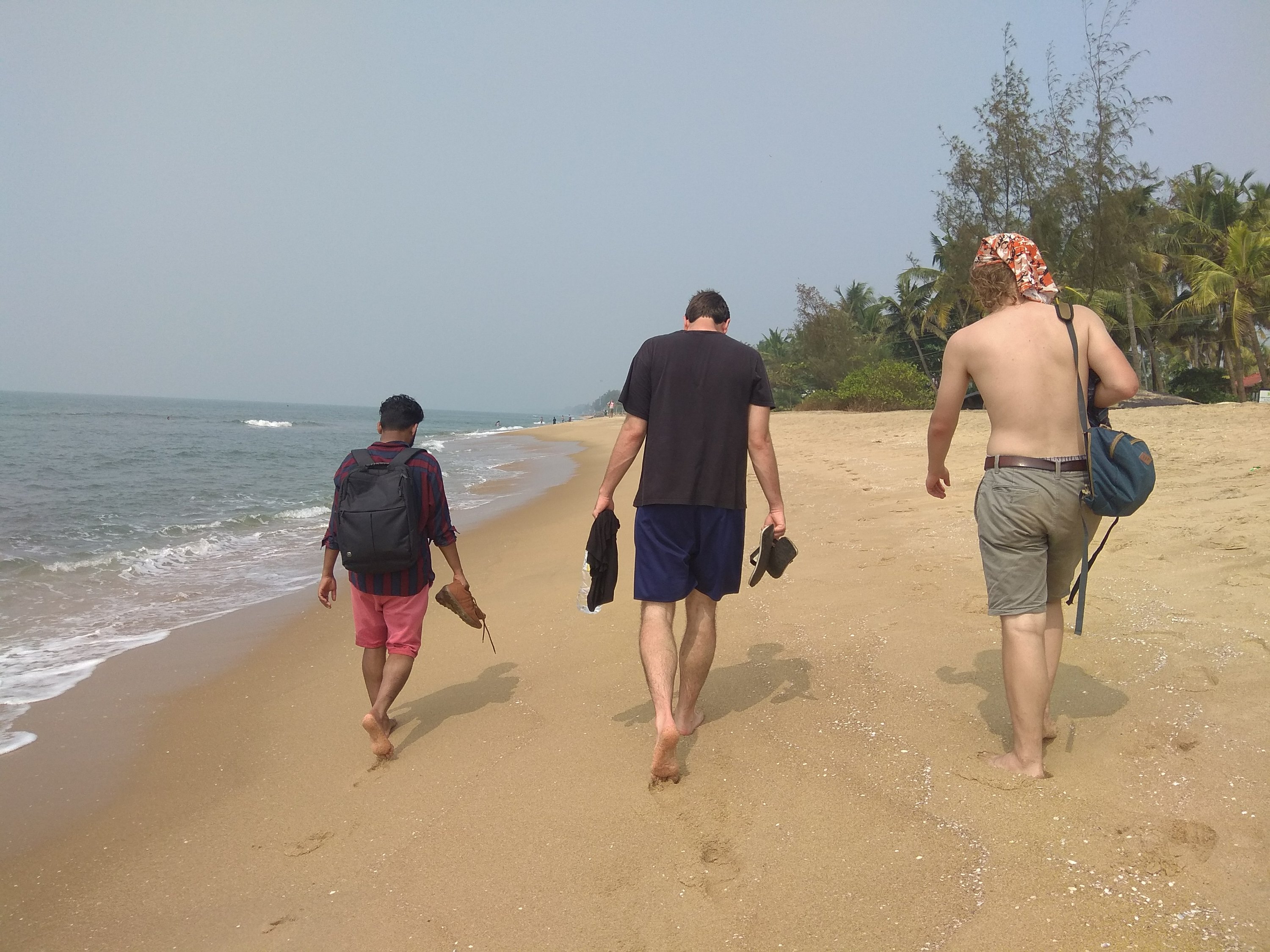 Kochi nabízí i pláže. Bohužel kvůli řádění tropické bouře na začátku prosince byla pláž v centru Kochi úplně zničená. Bílý písek byl pryč, promenáda podél pláže byla místy podemletá a zábradlí poničené. A všude nános odpadků. I přesto tu na kamenech či na zemi místní rádi sedí a pozorují západ slunce. Já jsem si ještě před odjezdem domu chtěla užít opravdickou a čistou pláž a tak jsem si poslední den udělala výlet pár kilometrů za město. Přidala se ke mně ještě dvojice kluků z Berlína a jeden Ind, který pochází z Kochi ale už sedm let pracuje v Glasgow jako IT specialista a má britské občanství. Bylo příjemné mít vedle sebe mužský doprovod. Museli jsme nejprve jet trajektem (za 4 rupie) a pak necelou hodinku místním autobusem a nakonec ještě asi dva kilometry rikšou. Výprava stála ale za to. Prázdná a čistá pláž, moře klidné, takže se dalo i zaplavat. Můj poslední den v Indii byl krásný.