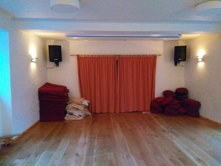 Prostory celého ašrámu byly krásně vybavené. Nádherná byla zejména nově zrekonstruovaná tělocvična s masivní dřevěnou podlahou a krásnou výzdobou.