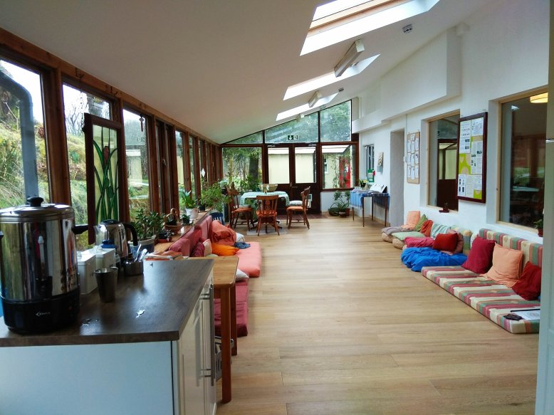 I když jsem nebyla účastníci kurzu, stále bylo co dělat. Den začínal hodinou a půl cvičení jógy, poté byla hodinka meditace a zpívání manter. Po snídani byl čas na karma jógu, kolem 11 pak malá přestávka na čaj (jsme přece v Británii), po obědě pak byly asi dvě hodiny volného času. Ty jsem i přes déšť ráda trávila výpravami po okolí. Bez zapůjčených holin by to nešlo – welšská krajina je sice krásná ale neskutečně podmáčená a bahnitá.