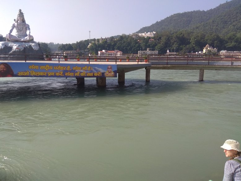 Centrum Rishikeshe je rozdělené Gangou na dvě části a ty jsou spojené dvěma lanovými mosty – Laxman Jhula a Ram Jhula, které jsou jen pro pěší, skútry a samozřejmě i krávy. Přejít most tak někdy zabere pár minut. Z obou mostů je krásný výhled na Gangu, z jejíhož proudu a síly jde opravdu respekt, a dále na chrámy podél řeky a koupající se lidi.