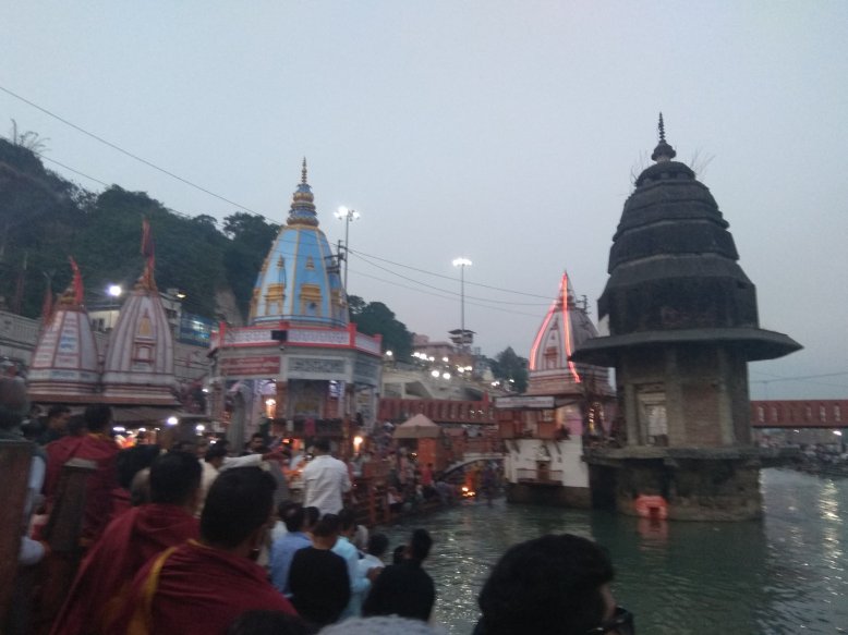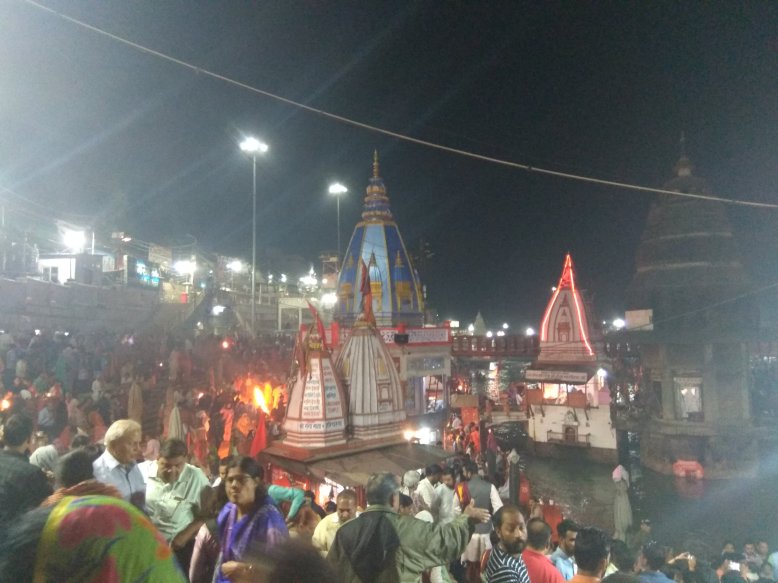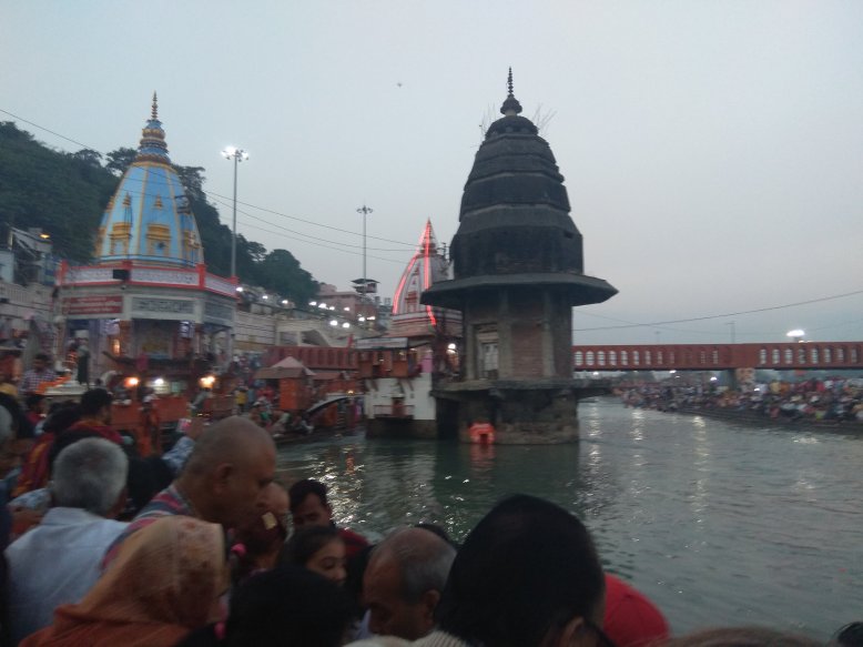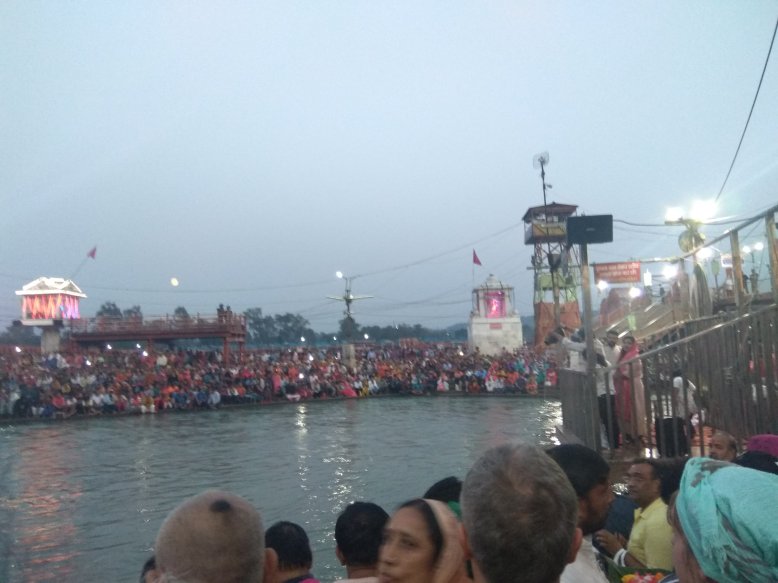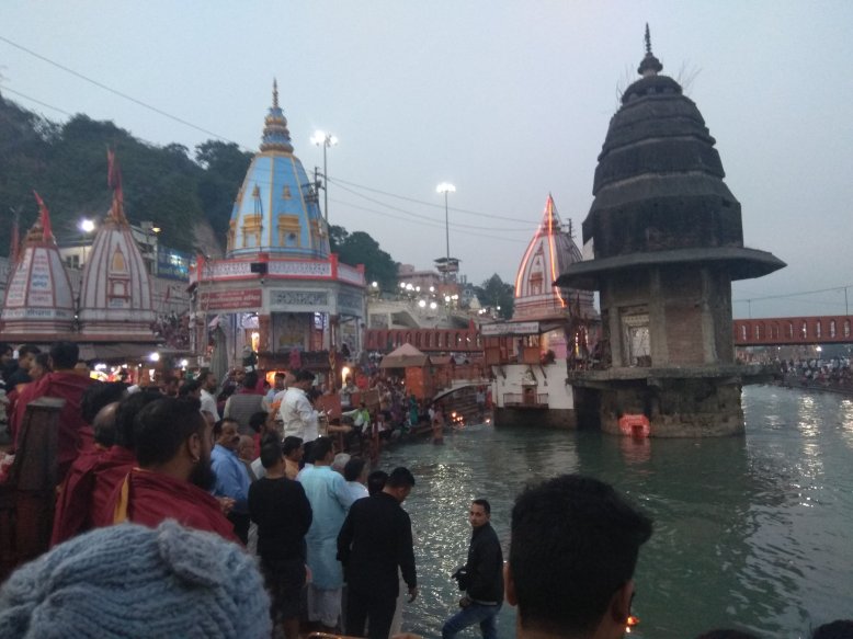 Haridwar je nejposvátnější hinduistické město ve státě Uttarakhand. Poutníci sem přicházející v davech, aby se vykoupali v Ganze a vykonali obětní rituál, tzv. Ganga aarti. Každý večer se tu na břehu sejde několik set až několik tisíc věřících. Zní to jako hrozné davové šílenství, kterému je lepší se vyhnout. Ale moje dvě spolužačky z Británie, které sem na slavnosti u Gangy jezdí každý rok, mě přemluvily že si to nemůžu nechat ujít. A tak během volného odpoledne vyrážíme ještě s dalšími spolužáky ve dvou taxicích do Haridwaru, asi 2 h jízdy z Old Rajpuru.